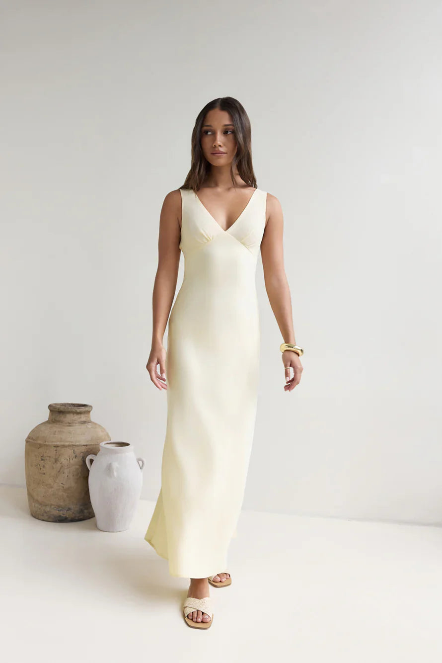 A dreamy silhouette inspired by our memories of summer, the Lost In Daydreams Satin Maxi Dress was made for celebrations. Pair with mules and gold adornments for an effortlessly elegant look.