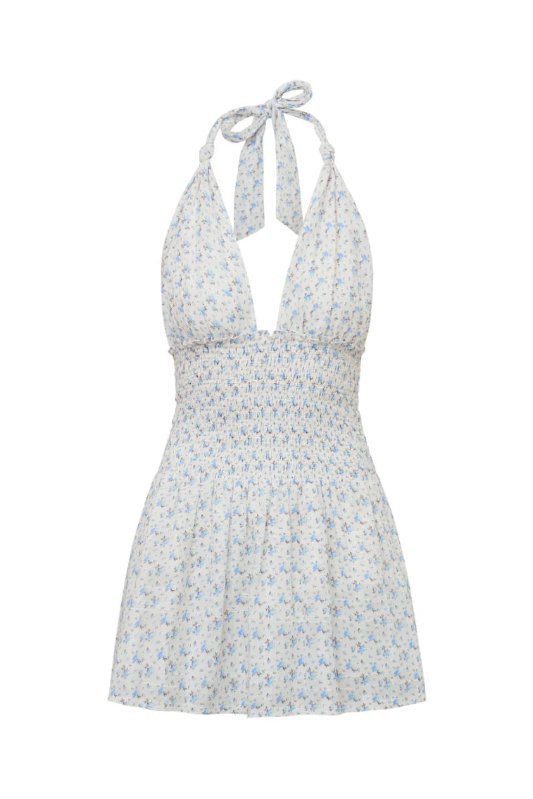 The Luisetta Dress returns as part of our Upcycled Icons Collection, a limited-edition, sustainable capsule featuring our best-selling silhouettes made from remnant LoveShackFancy fabrics. The pretty mini features a halter top with knotting details on the straps, a deep v-neckline, a smocked bodice, and a slightly ruffle skirt.