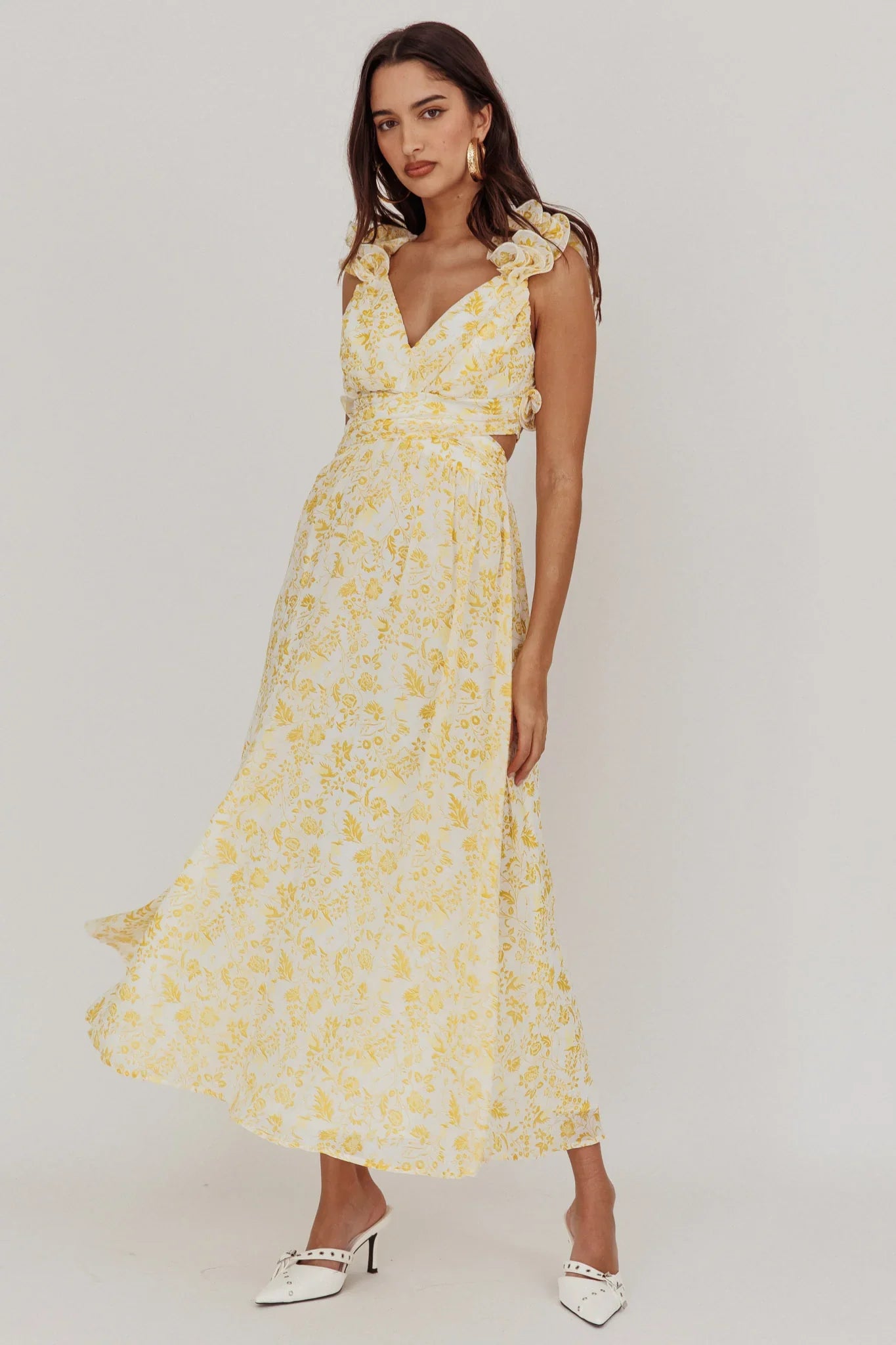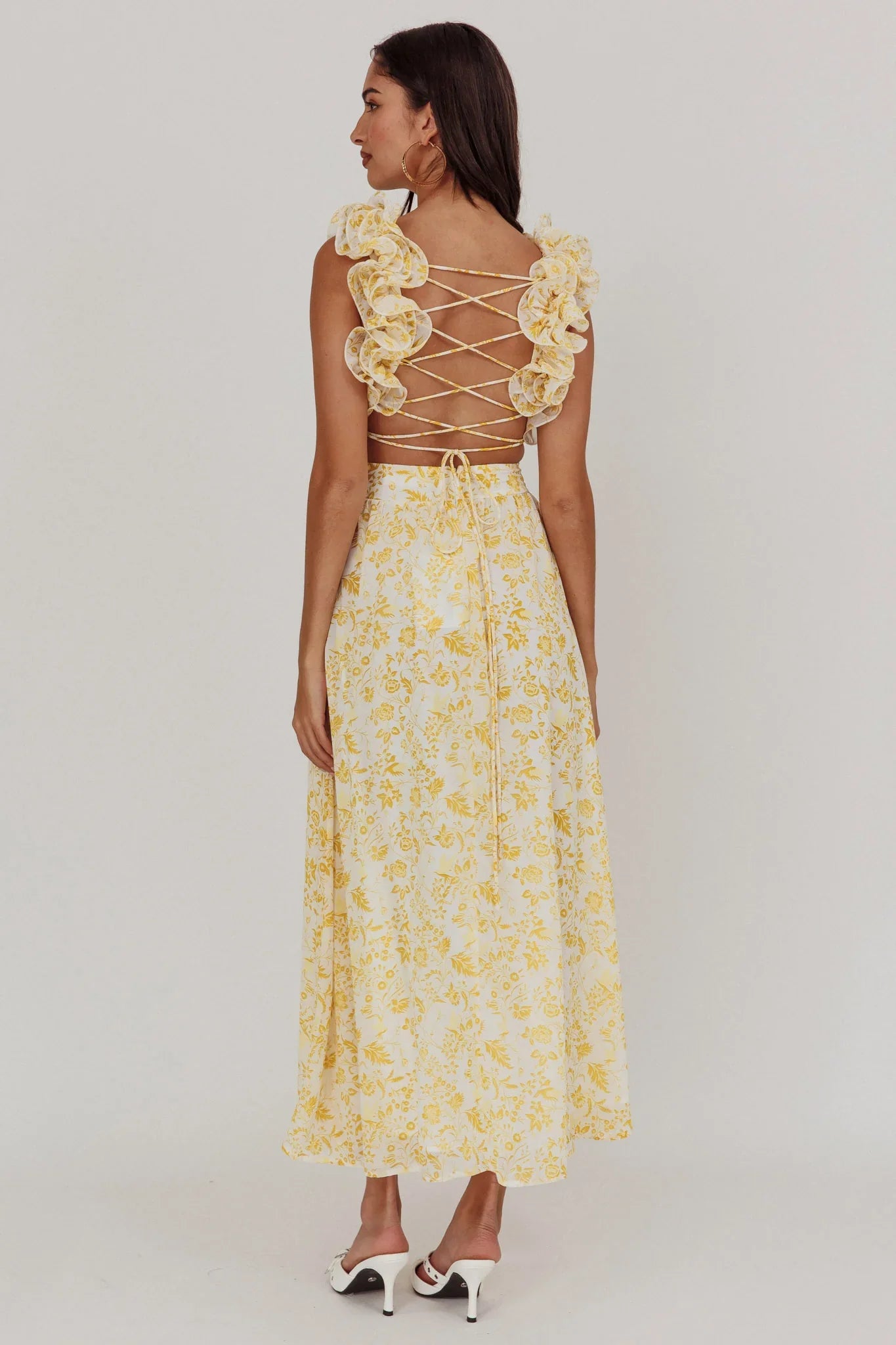 Sweep them off their feet in our stunning Madara maxi dress. It features feminine ruffle straps and a lace-up back. It's perfect for a garden wedding or special celebration with your fave girlies. Team it with strappy, white heels and a clutch for a show-stopping look.