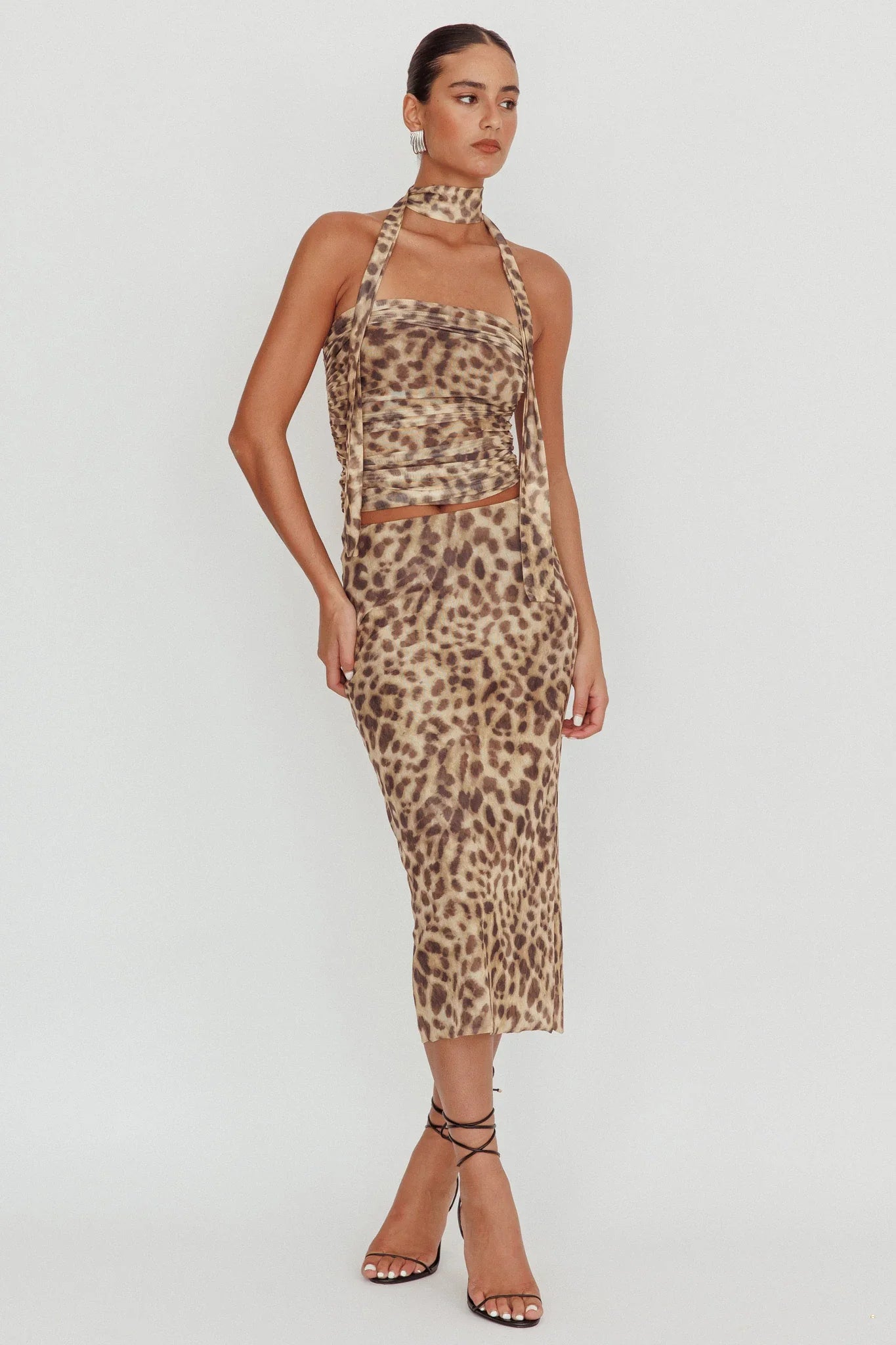 Step out in style in our chic Meet Up skirt. It features an elasticated waist and on-trend leopard print. Team it with its matching top and mules for a super hot look we are loving.