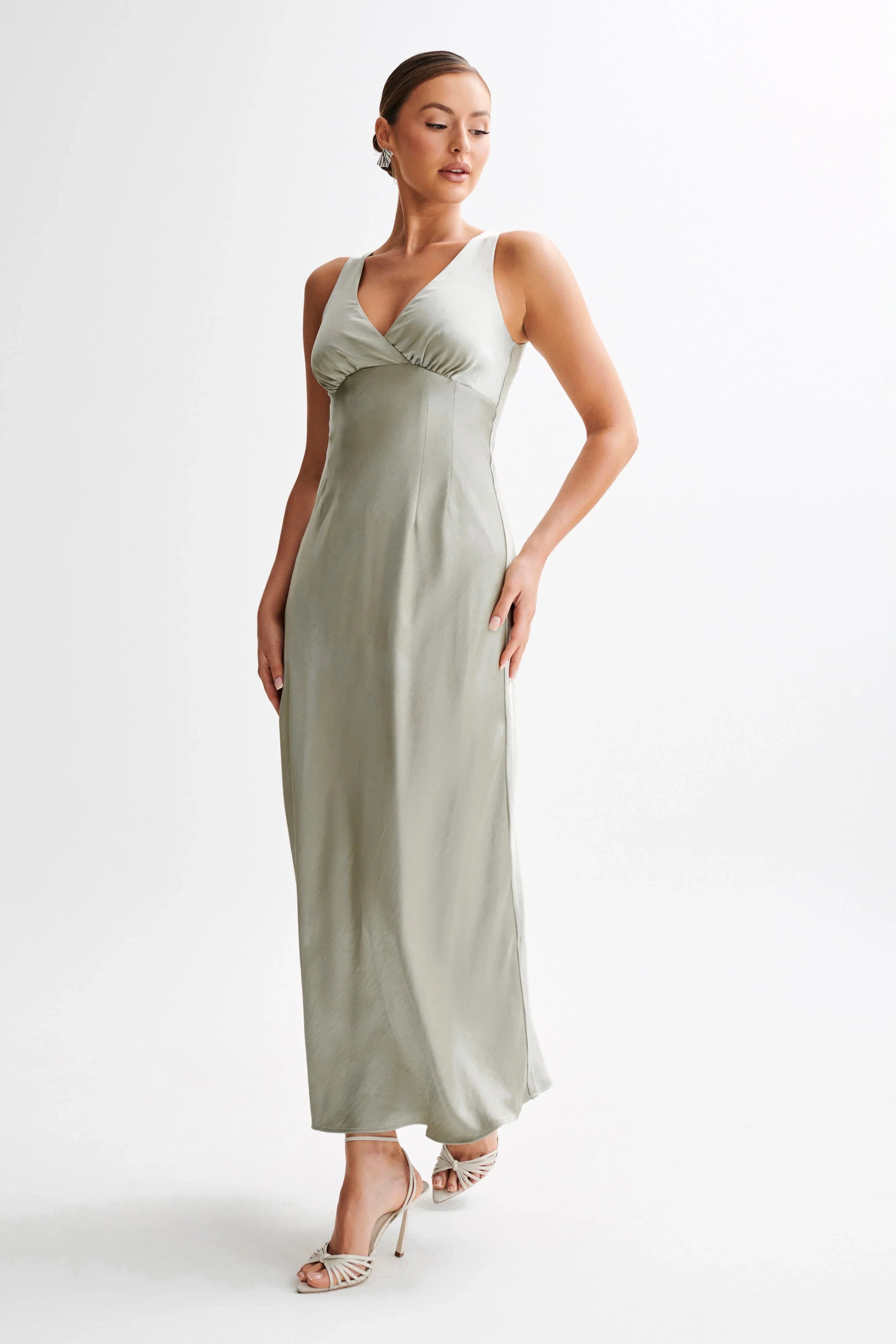 The MEGHAN Satin Maxi Dress epitomises timeless elegance and sophistication. Featuring a flattering V neckline and a discreet centre back invisible zip, this dress exudes understated charm and grace. Its maxi length adds a touch of allure, perfect for making a statement on any occasion. Enhanced with gathered under-bust detail, it ensures a flattering fit that complements your figure flawlessly. Lined for comfort, the Meghan dress is the epitome of effortless chic, allowing you to exude confidence and style with every step.