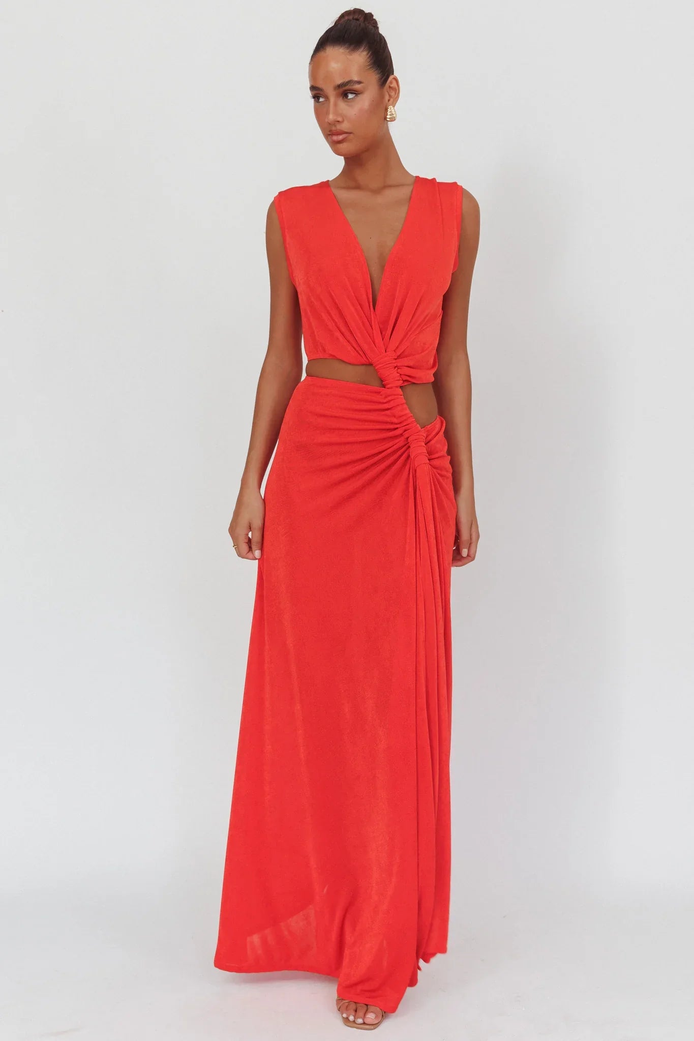 Jaws will drop when you walk in wearing our gorgeous Mimosa maxi dress. We are head over heels for its twist feature in the waist! Perfect for a glam birthday celebration or a special event. Team it with statement earrings, heels, and a clutch for a look that will leave them speechless.