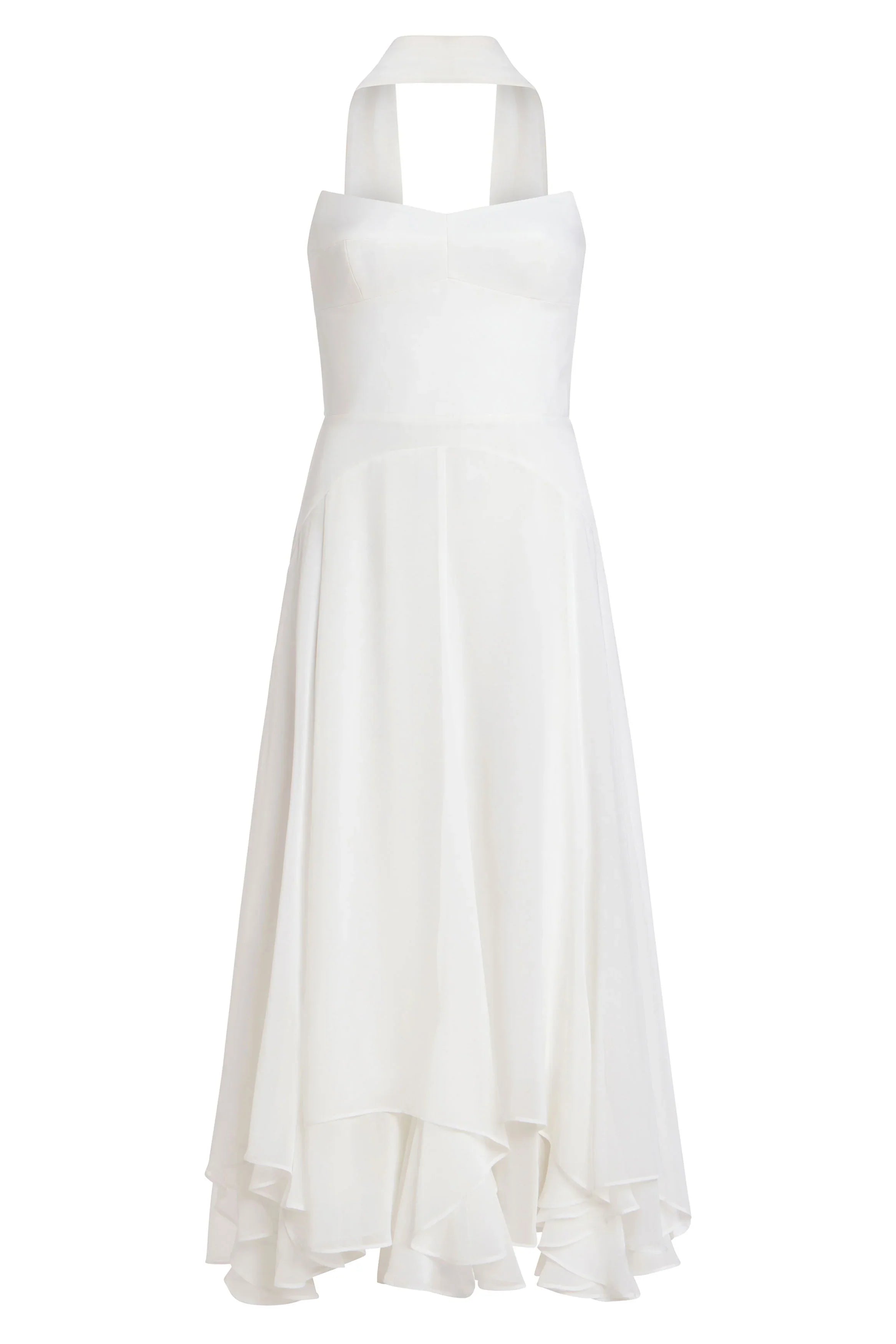Now available with a detachable scarf in limited color ways—perfect for adding a touch of flair or styling your own way. Make waves in the Monterey Dress. Designed with a strapless neckline and a soft ruffled hem, this dress is light, romantic, and full of movement.