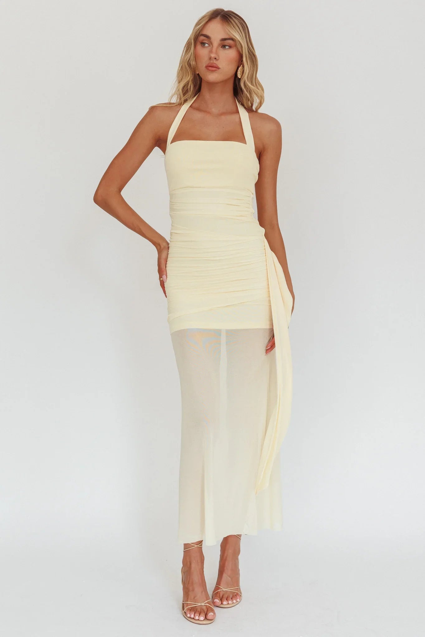 Turn heads in our gorgeous maxi dress. We are loving its sheer mesh overlay and sash detail in the side. It's perfect for a wedding or special event. Team it with strappy heels and a clutch for an unforgettable look.