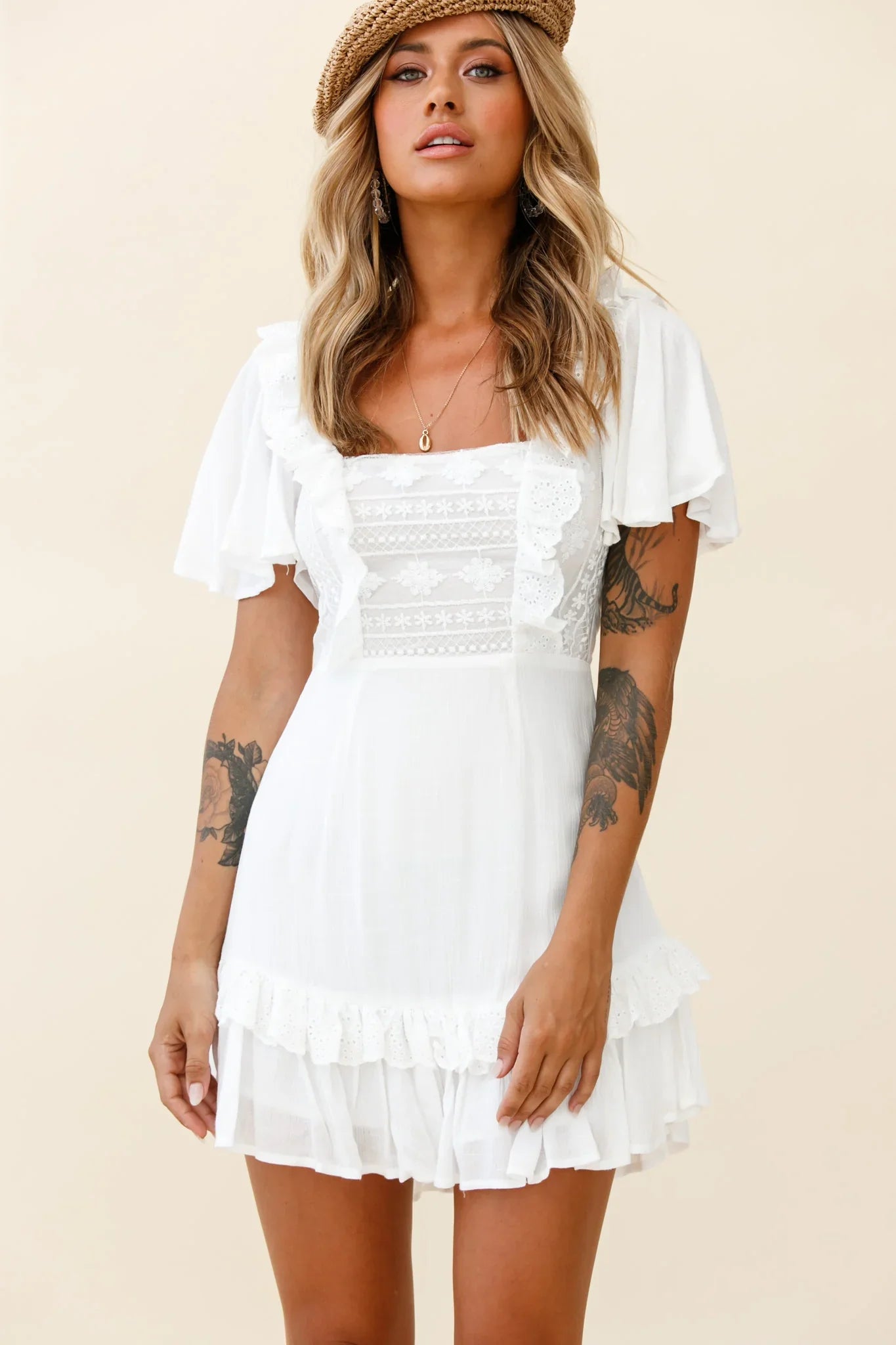 You'll look like you just stepped out of heaven in our adorable Say You Love Me dress. We are loving the gorgeous embroidery and frill accent in the bust. Perfect for a flirty lunch date teamed with your favorite mules and a basket bag. Cute!