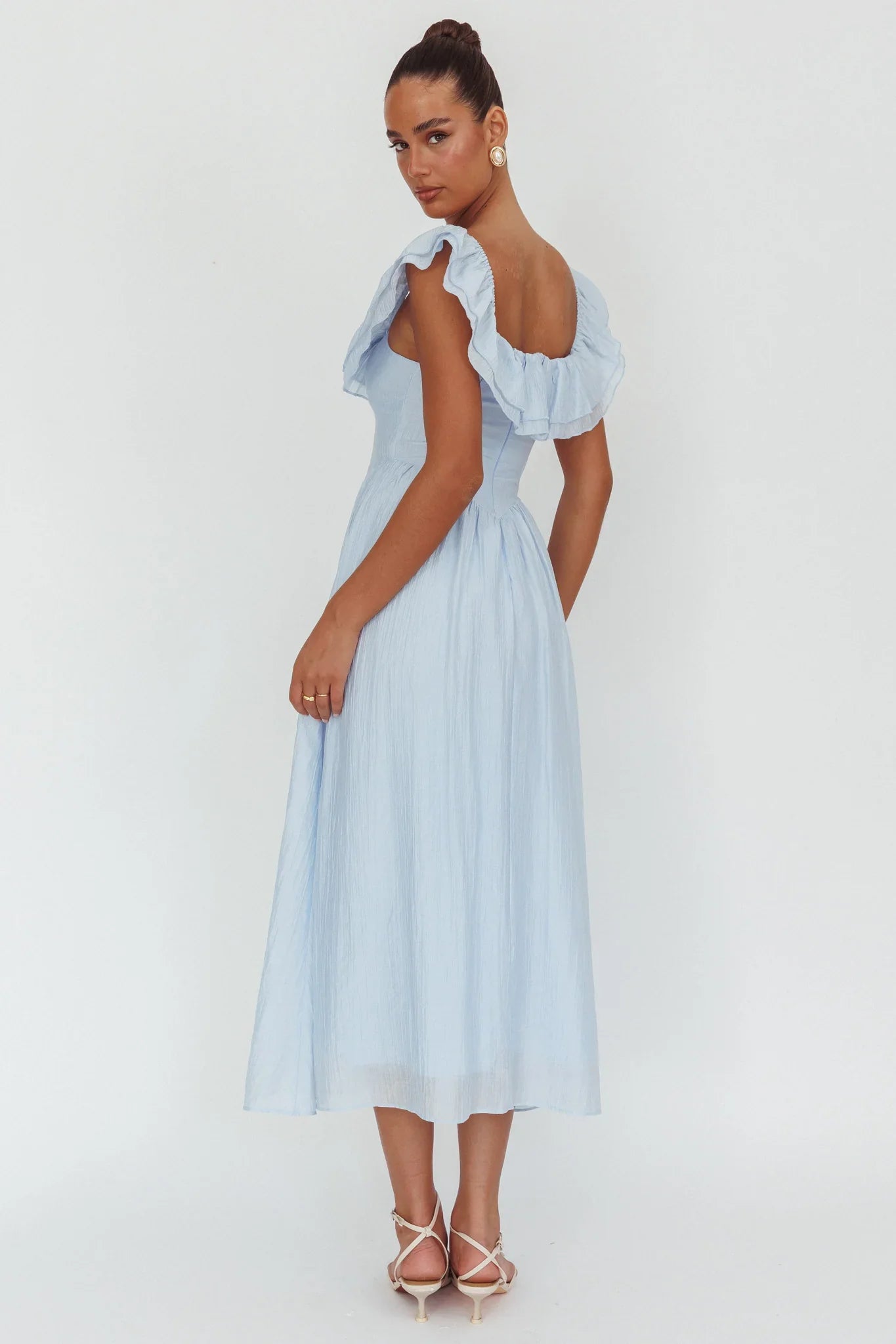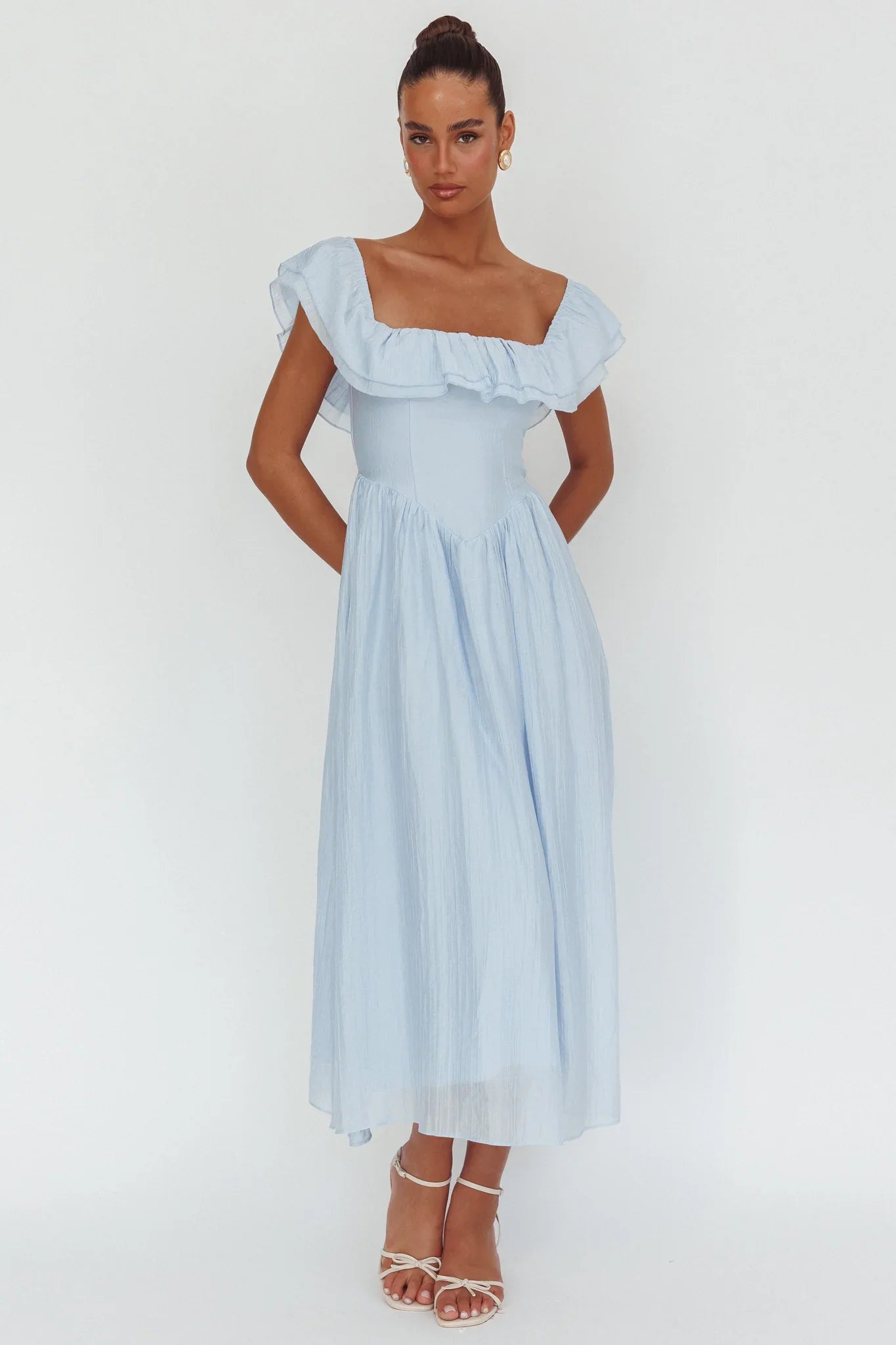 Twirl the day away in our gorgeous Serinah maxi dress. It features an on-trend basque waist and a pretty off-shoulder frill. Wear it on a flirty date teamed with sandals and a tote for a look we are loving.