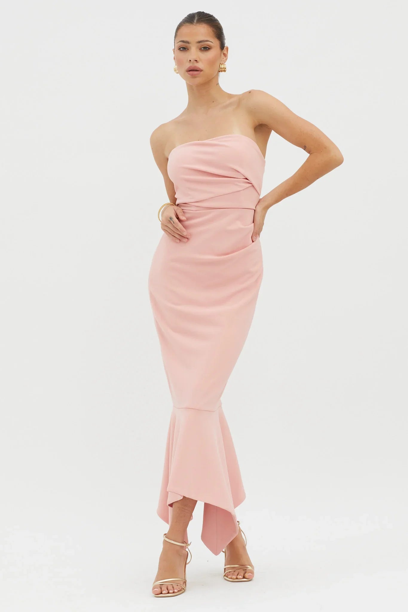 Make an entrance in our pretty Sharona midi dress. It features a classic, strapless neckline and gathering detail in the side and is perfect for a wedding or an anniversary dinner with your love! Team it with nude heels and a clutch for a sophisticated look we are loving.