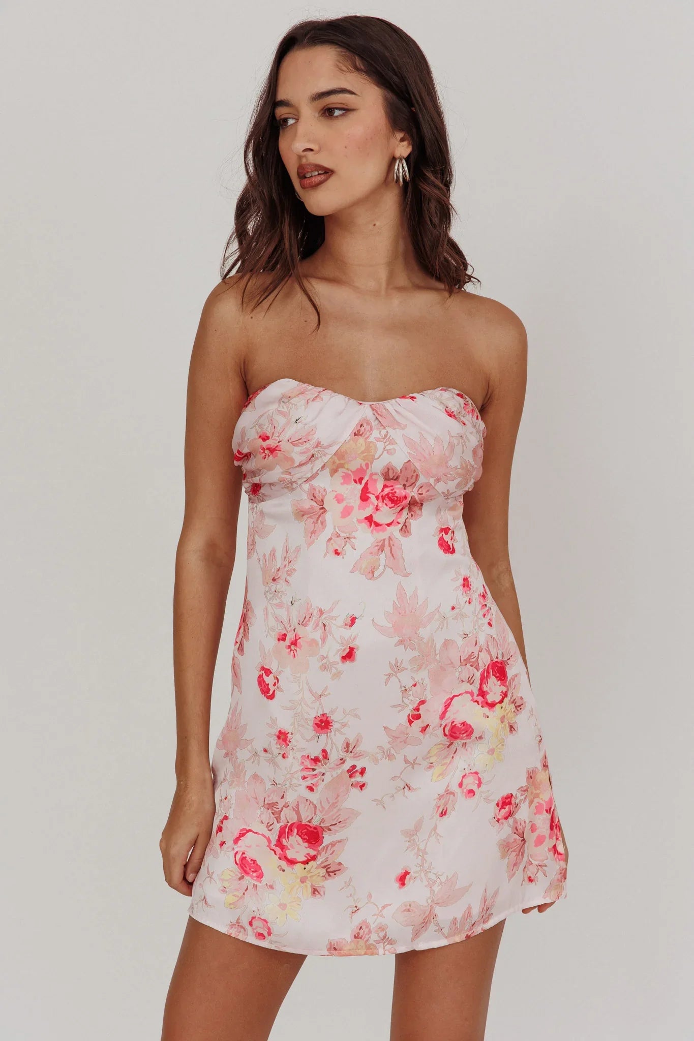 Make a statement in our gorgeous Sian mini dress. It features a strapless design and subtle sweetheart neckline. It's perfect for a weekend brunch date or girls' night out. Team it with strappy heels and a tote for an elegant look.