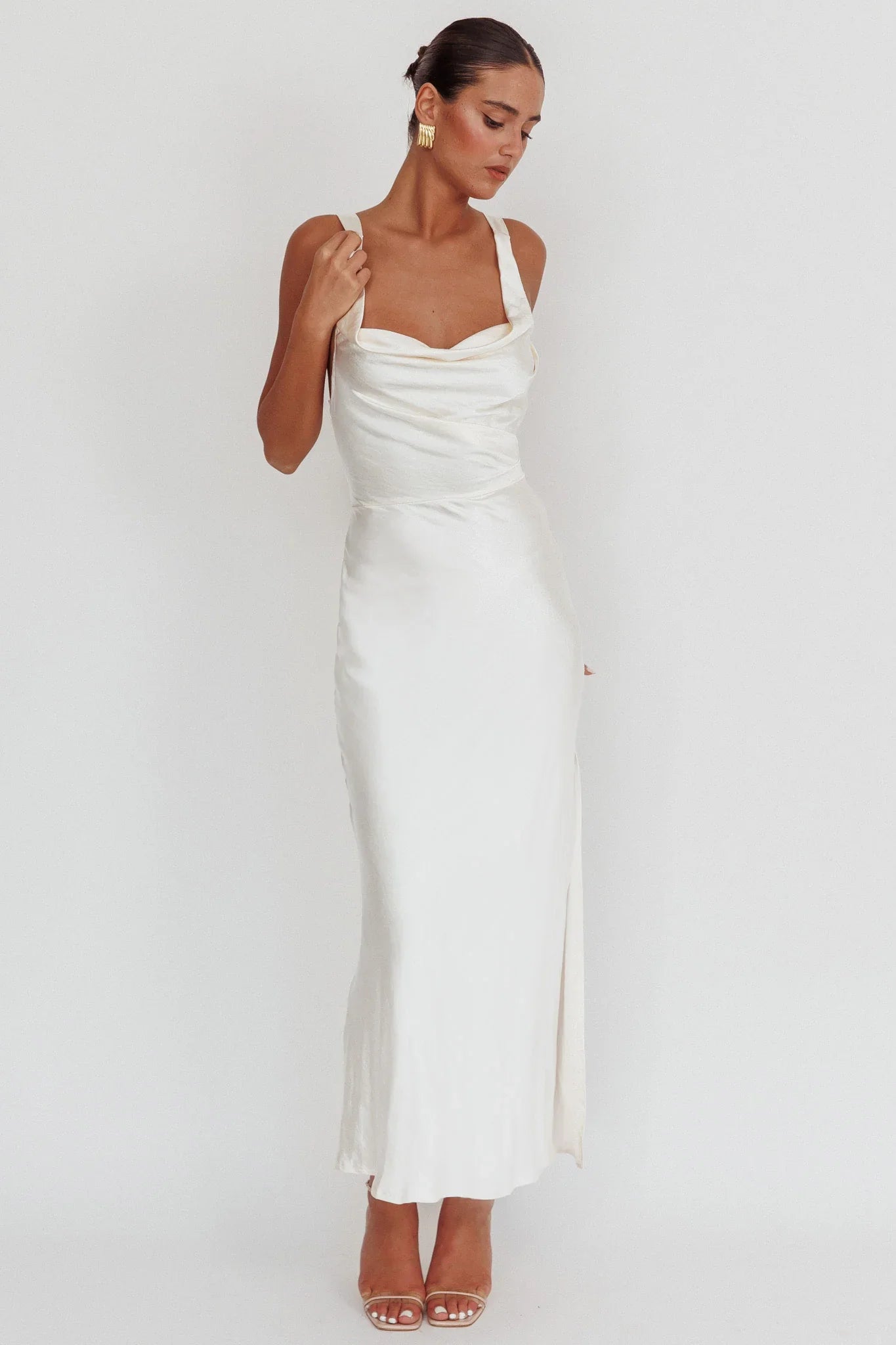 Steal the spotlight in our gorgeous Sitara maxi dress. It features a satin fabric throughout and a tied, criss-cross back. Wear it to a birthday soiree or red carpet event! Team it with strappy, nude heels and a satin clutch for an unforgettable look.