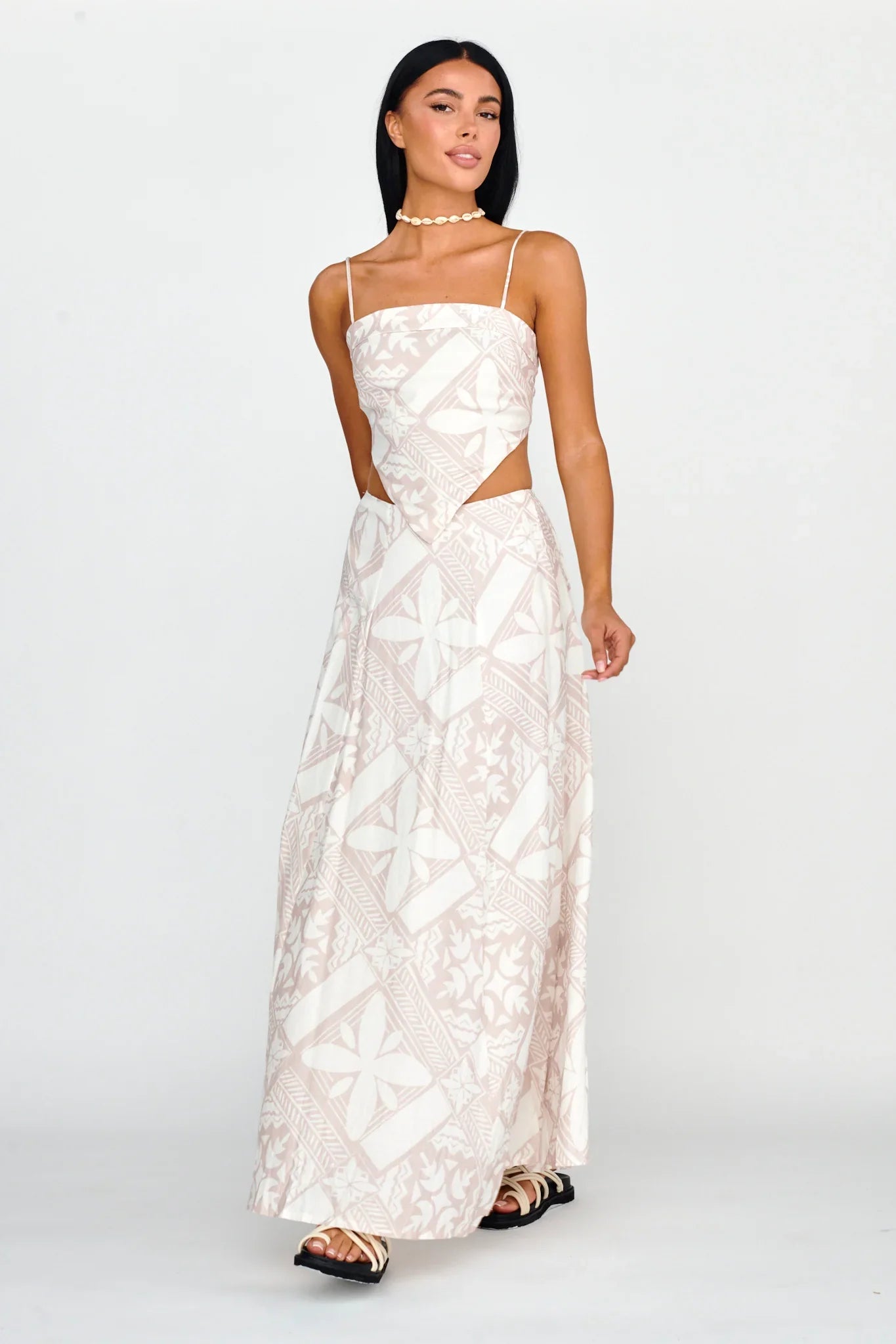 Breeze through your Saturday in our pretty Sought After top. It features a chic print and cute tied back and is perfect for strolling your favorite farmers' markets or coffee dates with your BFF. Team it with its matching skirt and sandals for a look we are loving.