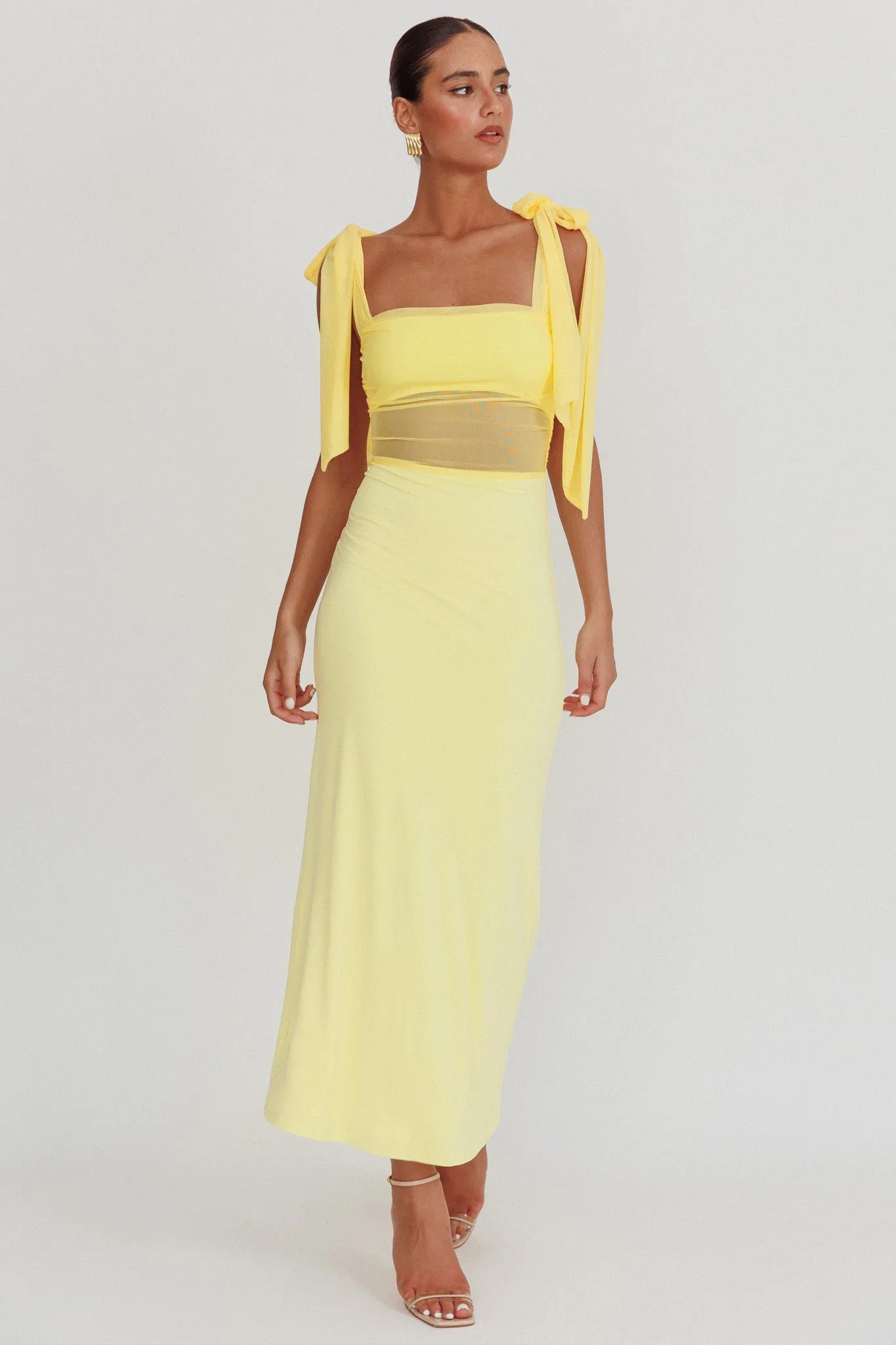 Designed for the stylish and feminine, our Starry Eyed maxi dress is bound to leave an unforgettable impression. Featuring a mesh waist panel that reveals glimpses of skin while maintaining an air of mystery, this dress is the perfect balance of daring and style! Wear it to formal functions or special events. Highlight your personal style by pairing this dress with your signature jewelry pieces.