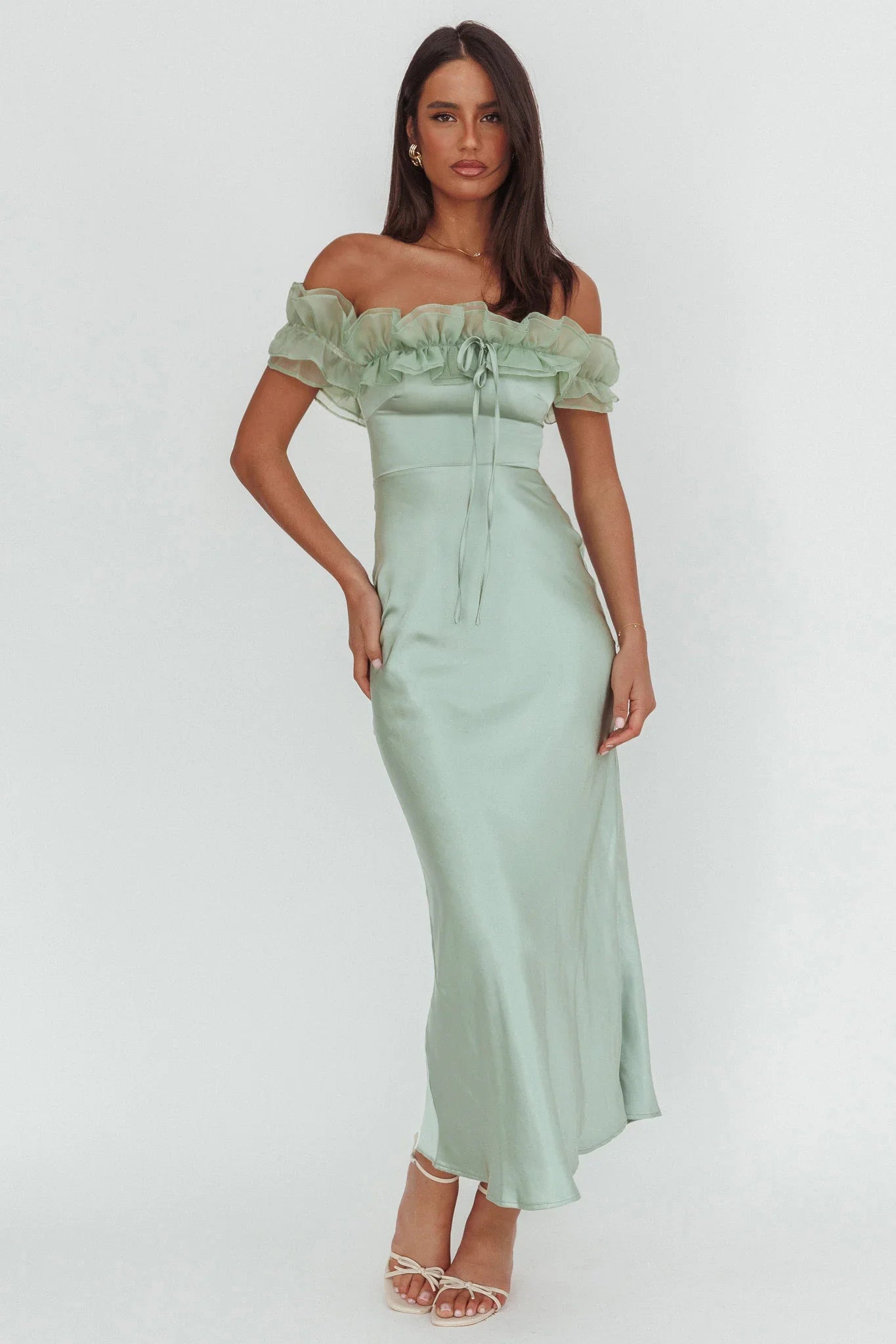 Make an entrance in our stunning Summerfield maxi dress. It features an off-shoulder design and super cute frill detail. Perfect for a wedding or special occasion teamed with heels and a clutch for an elegant look.