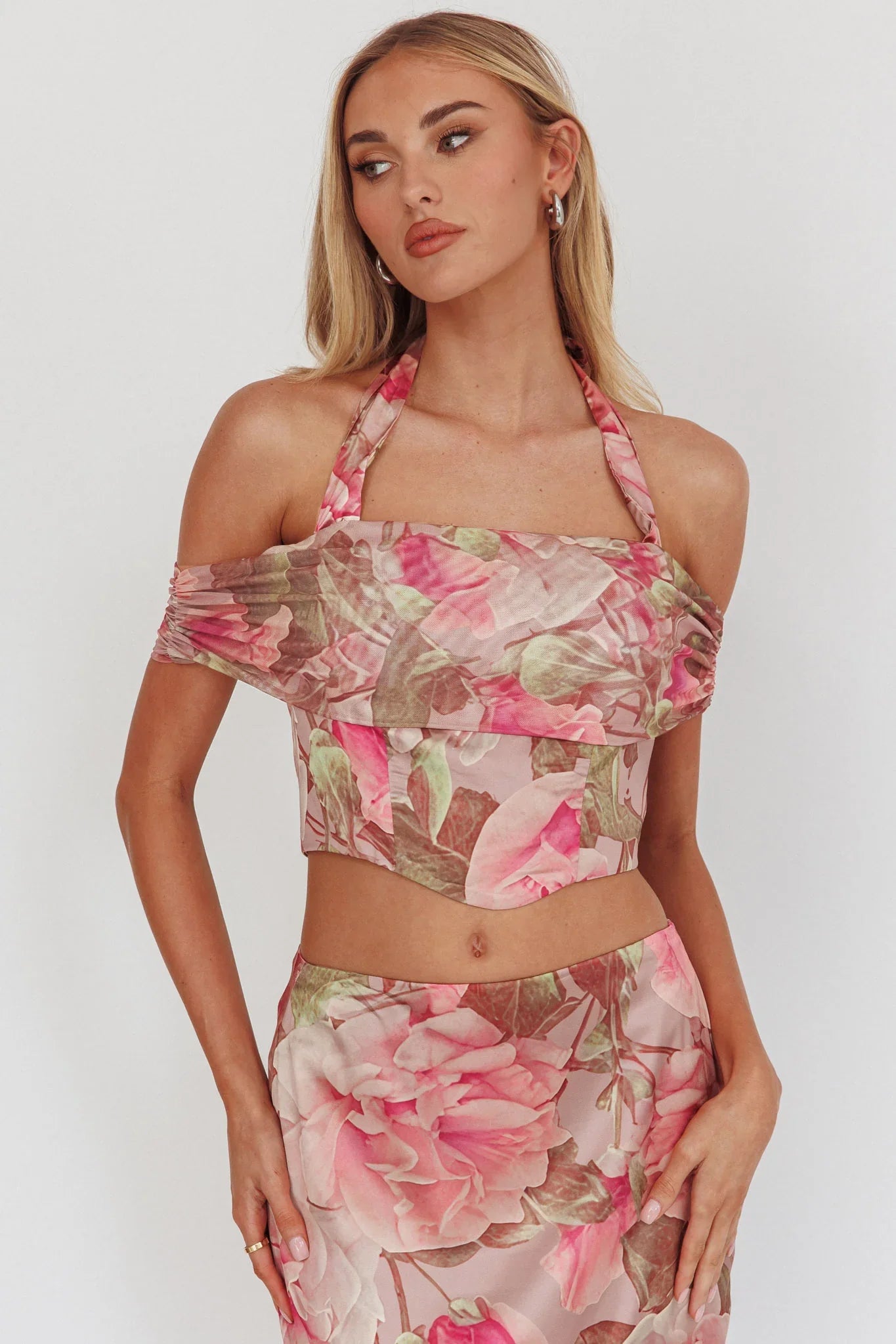Strut in style in our chic Sunset High crop top. It features a halterneck and off-shoulder design and is just what you need for sunset cocktails with your girls teamed with its matching maxi skirt and heels for a look that will turn heads.