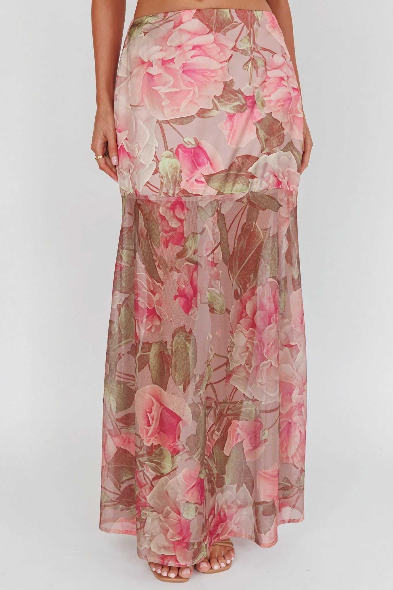 Strut in style in our chic Sunset High maxi skirt. It features a pretty foral fabric and sheer hem design. It's just what you need for sunset cocktails with your girls teamed with its matching crop top and heels for a look that will turn heads.