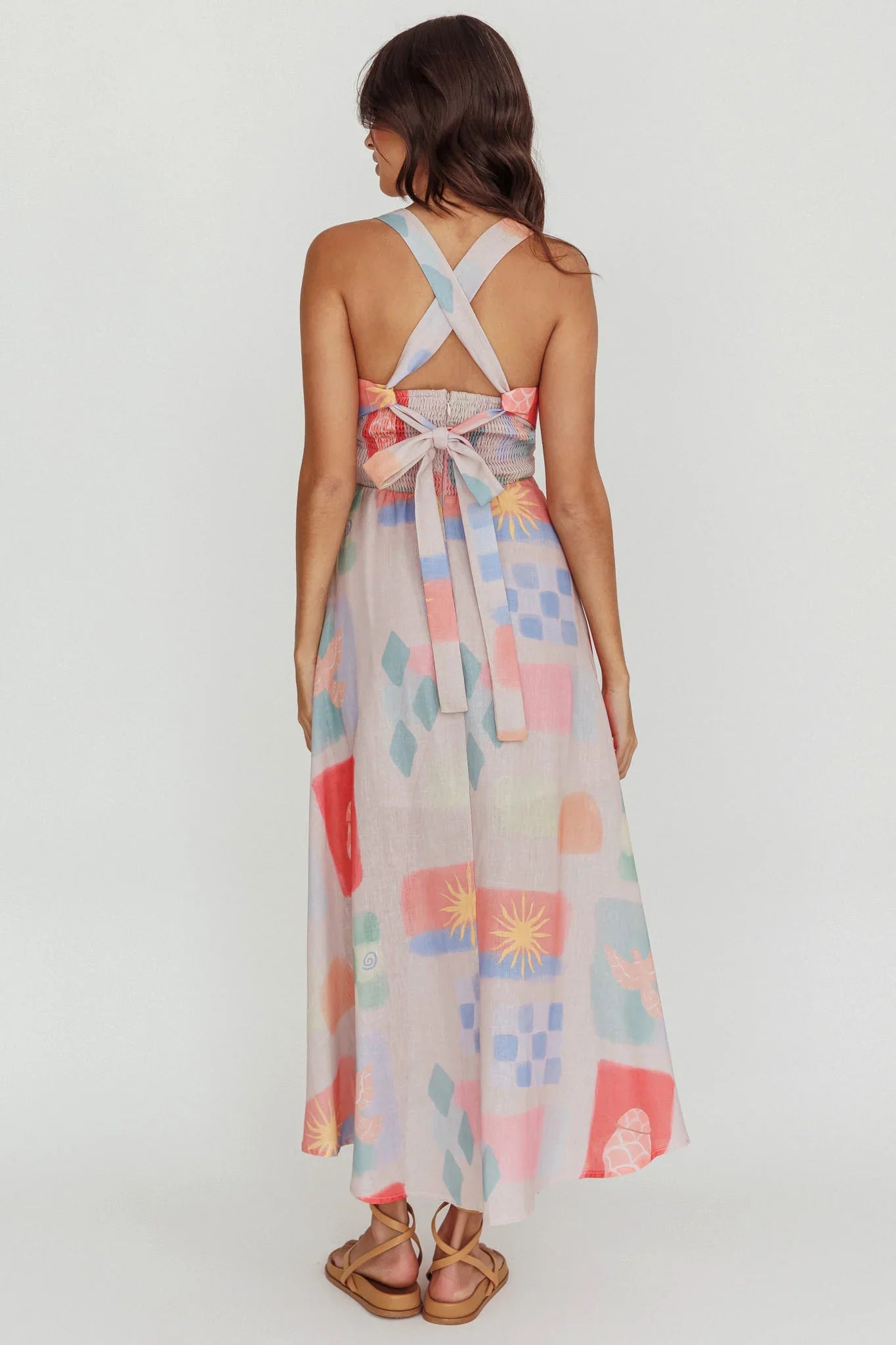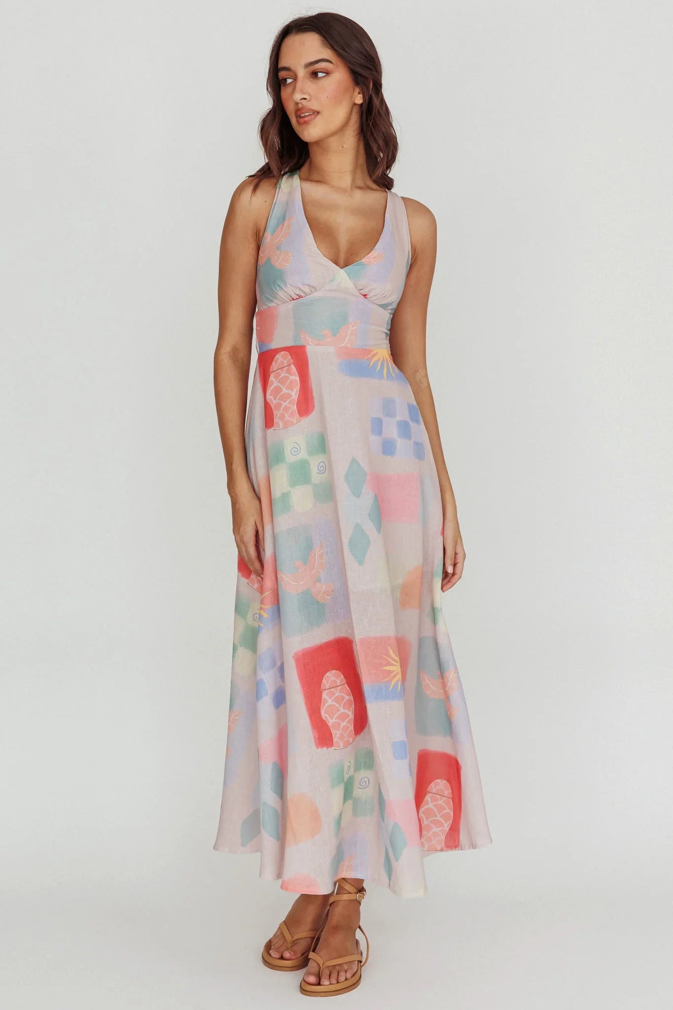 You'll feel like packing your bags and jet-setting to an island paradise in our Sweethearts maxi dress. We are in love with its graphic multi print and the classy A-line silhouette. The dress is perfect for sun-drenched days! Team it with sandals and a straw tote for a look that will turn heads.