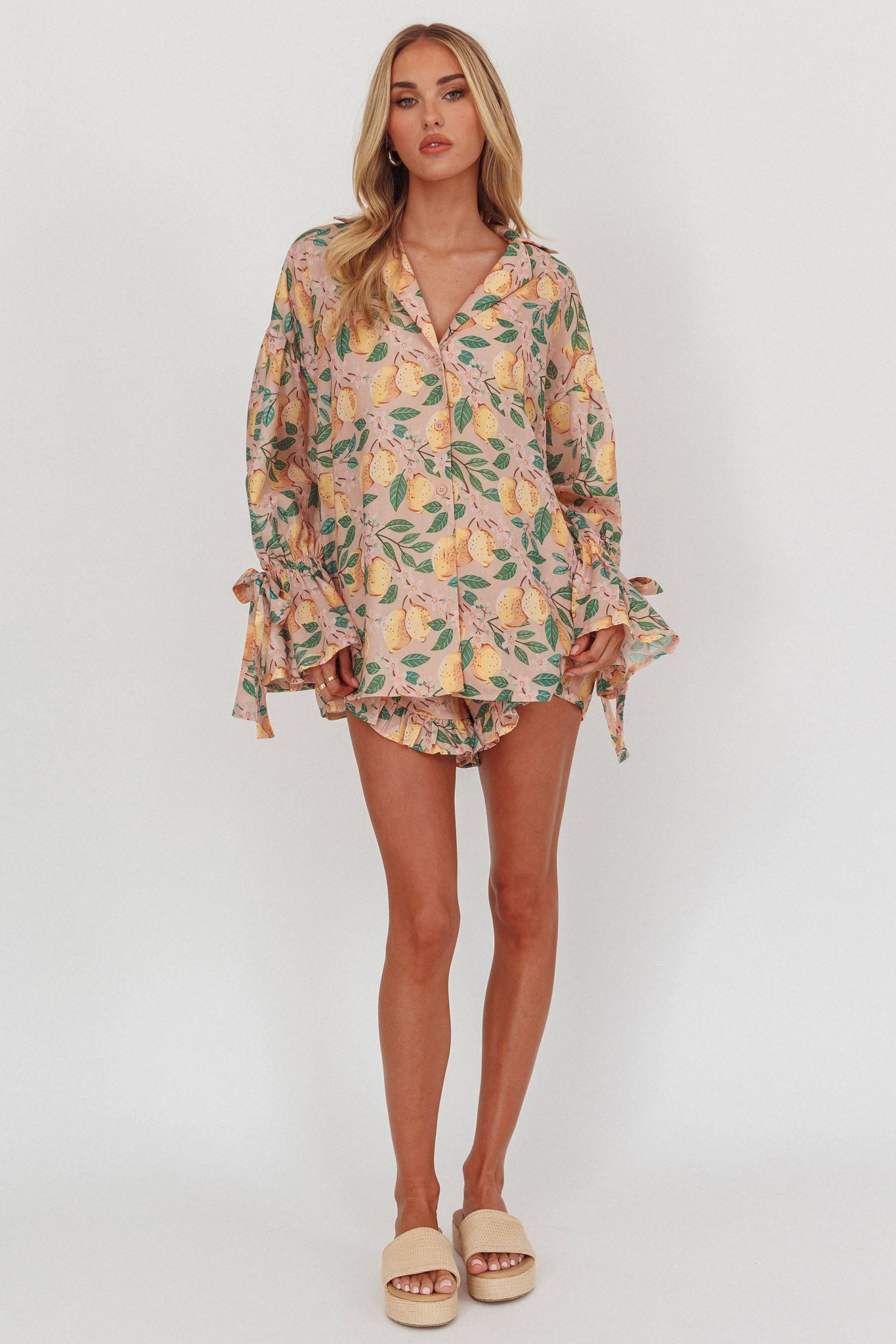 Float through your weekend in our pretty Telling Secrets top. It features long sleeves and tie details in the cuffs and is perfect for coffee dates with your girls teamed with its matching shorts and slides for an It Girl look.