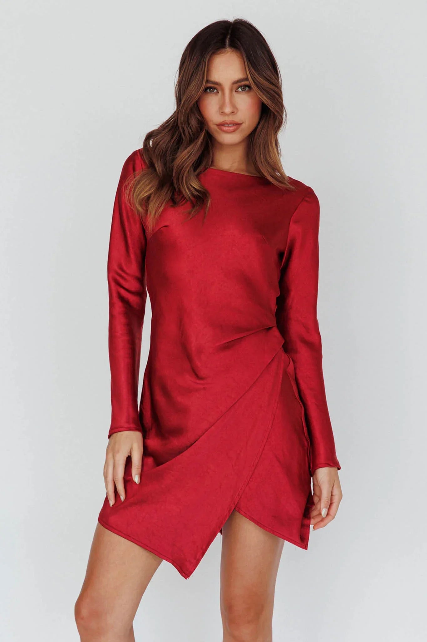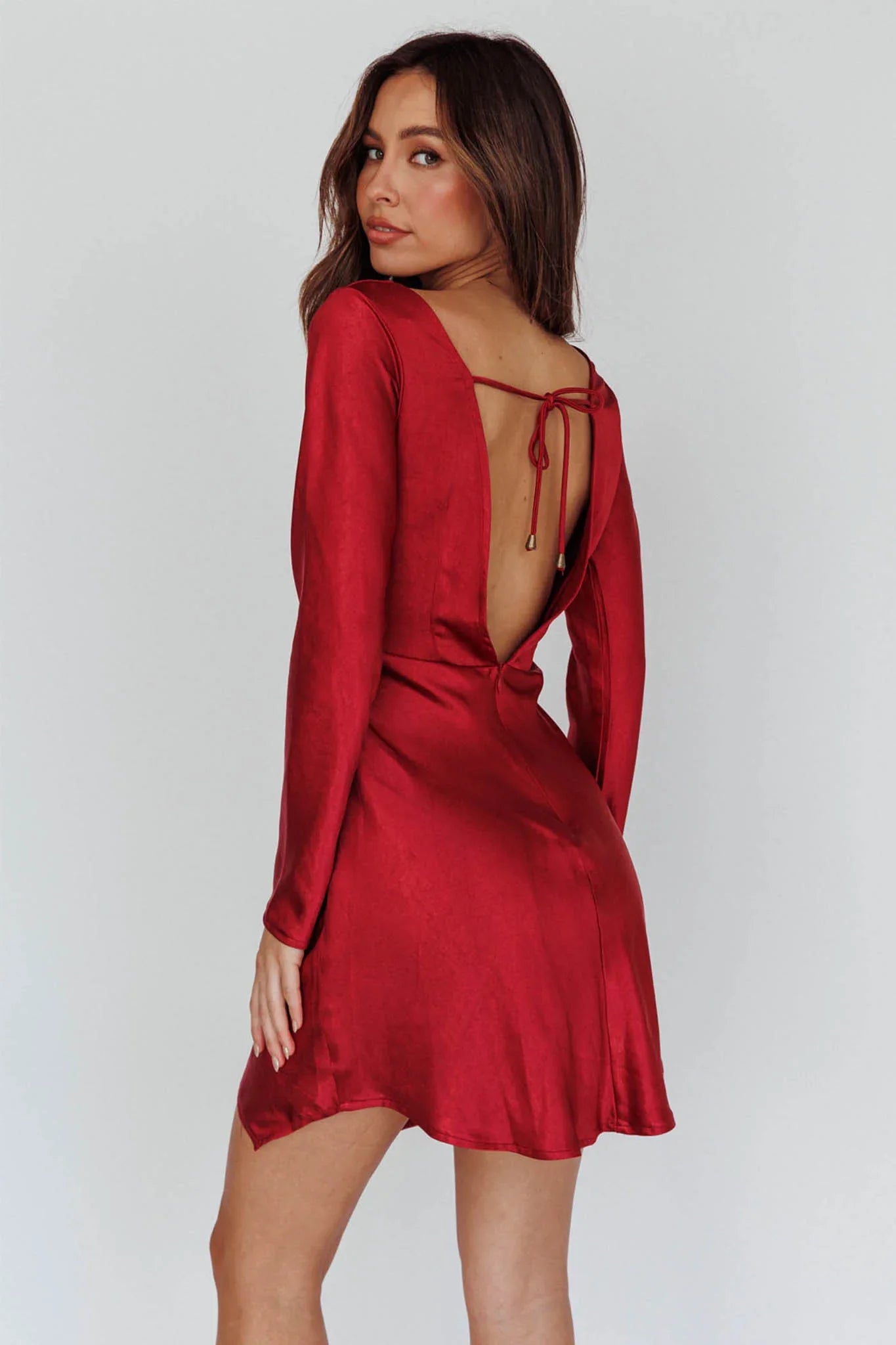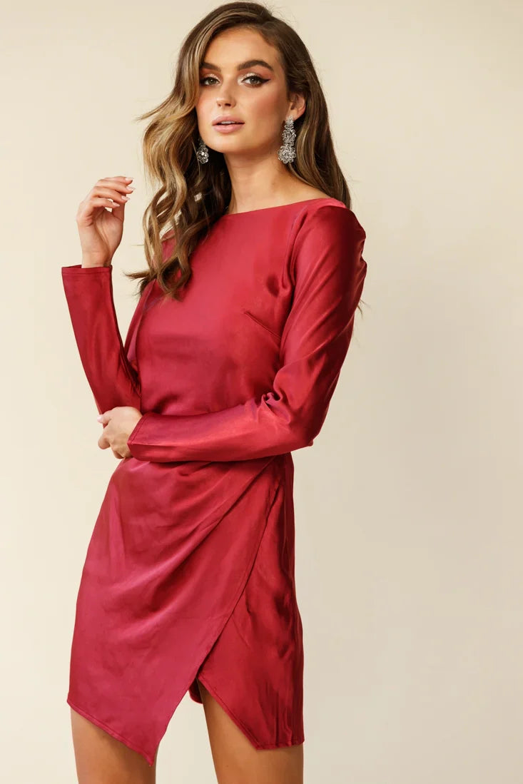 They'll hate to see you go, but they'll love to watch you leave in our Thank Me Later dress. Partially lined it features a flattering boat neckline, long sleeves, asymmetrical hemline, pleat detail at the waist and sexy, open back. Wear it on a girls' night out, sipping cocktails and flirting with Mr. Tall, Dark & Handsome. Team it with strappy heels to complete the look.