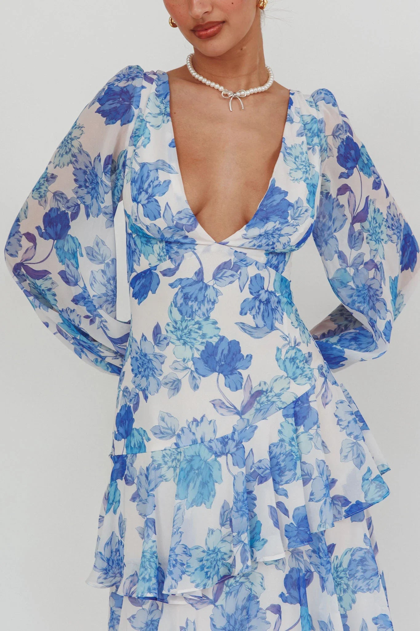 Jaws will drop when you float by in our gorgeous Veda dress. Its pretty, tiered ruffles and long puff sleeves make it fit for a princess! Perfect for a special birthday celebration teamed with heels and a tote for a dreamy look.