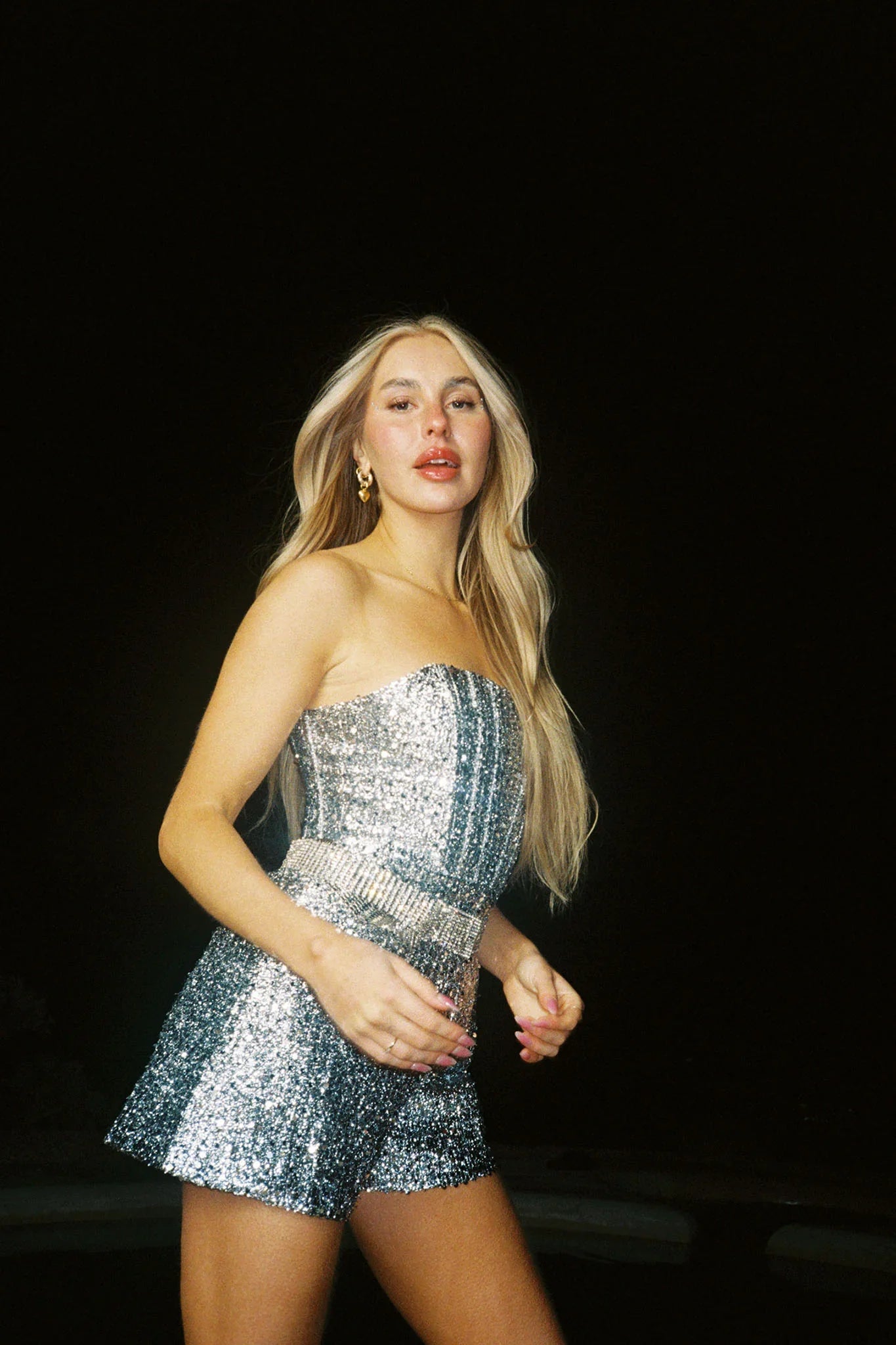 Get their attention in our gorgeous Vivid Dreams romper. We are obsessed with its sequin-embellished fabric and chic, structured bodice. Perfect for a big, birthday celebration. Team it with strappy, silver heels and a clutch for a look that's sure to turn heads.