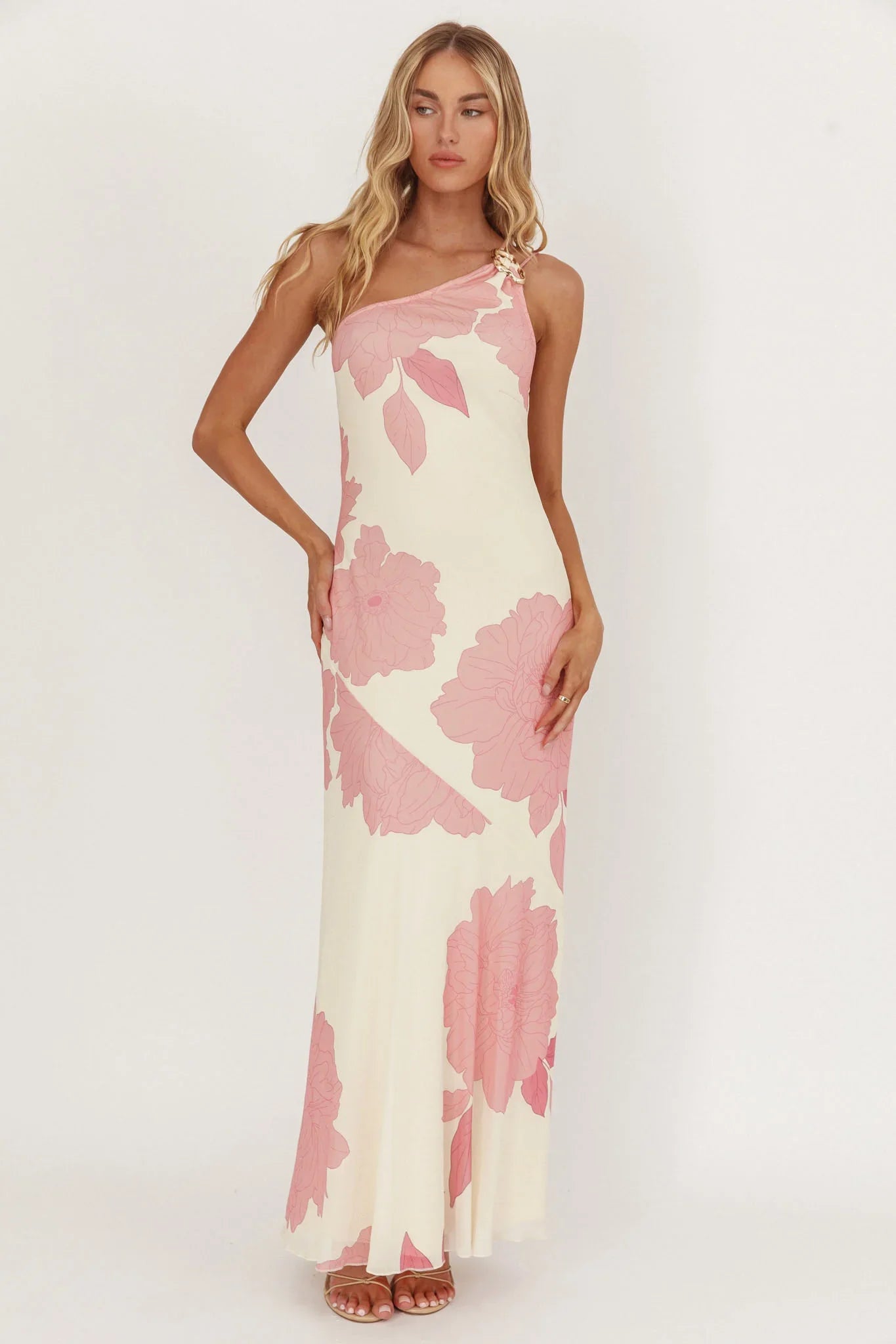 Make a statement in our gorgeous We Belong Together maxi dress. It features a one-shoulder design with double straps in the back. It's just what you need for Friday night cocktails with your besties. Team it with strappy heels and a tote for a look that will turn heads.