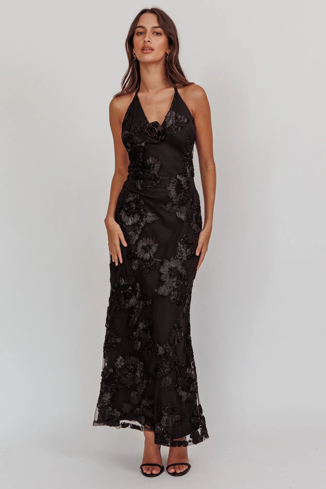 Make an entrance in our pretty Your Affections maxi dress. We are in love with the floral ribbon designs throughout and it features a detachable rosette in the bust. Perfect for a romantic dinner date teamed with strappy, black heels and a purse to complete the look.